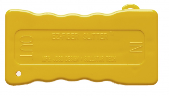 Used to quickly, easily, and safely slit the outer jacket of fiber optic drop cable. Using field proven high grade stainless steel blades in a completely sealed hard plastic enclosure the EZ-Fiber Slitter allows for cleanly slitting the outer jacket of fiber optic drop cables with a simple push, press, and pull motion. With completely enclosed dual cutting blades, the EZ-Fiber Slitter eliminates the need for exposed blade knives and provides a quick and simple tool for outer jacket slitting. The tool has been tested on Corning, Pirelli, and Sumitomo flat drop fiber and is designed to accommodate both toneable and nontoneable fiber drop cables up to 8.5mm in width and 5.0mm in height.