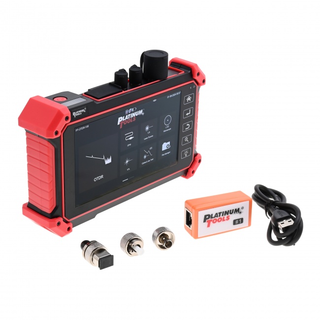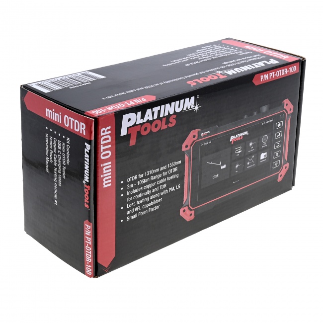 The PT-OTDR-100 mini OTDR tester provides a simple to setup and easy to use solution for OTDR testing. Includes a 5.5 inch OLED touch screen for easy viewing of cable tests and can save and export your OTDR tests. This unit will perform OTDR tests, OPM, VFL and laser source functionality for fiber optic cable, and will also perform continuity testing and TDR for Category cable
